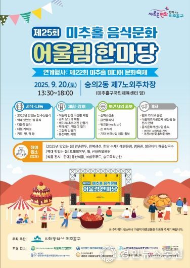 한편, 이번 행사는 ‘미추홀 미디어문화축제’, ‘나이스 미추마켓’을 비롯한 여러 행사와 연계돼, 볼거리와 즐길 거리가 한층 더 풍성하게 펼쳐질 예정이다.