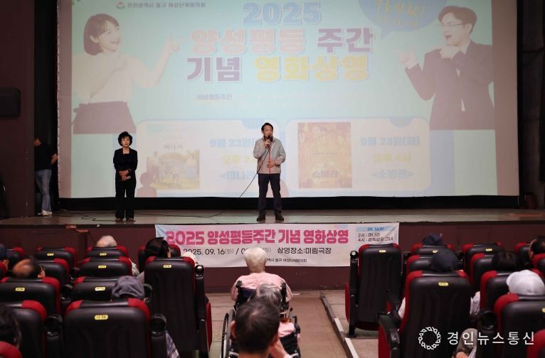경인뉴스통신 김종득 기자 | 인천 동구는 2025년 양성평등주간을 맞아 지난 16일, 23일 미림극장에서 ‘양성평등주간 기념’ 영화 상영을 성황리 마무리했다고 밝혔다.