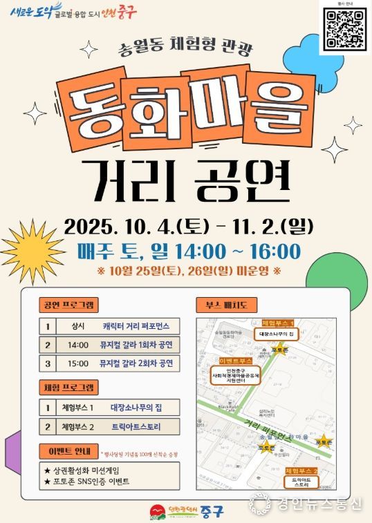 경인뉴스통신 김종득 기자 | 인천시 중구는 축제의 계절 가을을 맞이해 송월동 동화마을 일대에서 ‘체험형 관광 프로그램’을 운영한다고 1일 밝혔다.