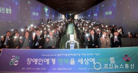 경인뉴스통신 유동익 기자 | 이상일 용인특례시장은 14일 기흥구 상하동 빛으로아트스토리에서 열린 ‘기흥장애인복지관 개관 20주년 기념식’에 참석해 복지관의 20주년을 축하하고 관계자들을 격려했다.