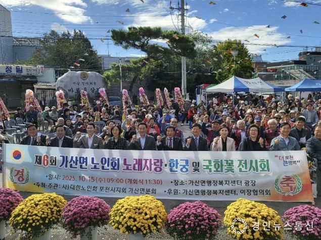 행사에 앞서 가산면 노인회 발전과 어르신 복지 증진에 기여한 분들에 대한 감사패와 표창 수여를 진행했다. 이어 열린 한궁경기, 노래자랑, 국화꽃 전시회 등 프로그램에서 어르신들은 활기차게 참여하며 즐거운 시간을 보냈다. 특히 노래자랑 대회에서는 참가자와 관객이 함께 어울려 흥겨운 무대를 만들었으며, 기관·단체장들의 특별 출연으로 축제 분위기가 더욱 고조됐다.