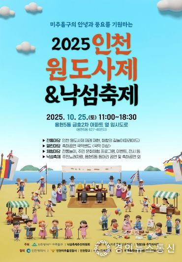 경인뉴스통신 김종득 기자 | 인천 미추홀구는 오는 25일 용현5동 금호2차아파트 옆 임시도로 일대(627-46번지)에서 ‘인천 원도사제(仁川 猿島祠祭) 및 낙섬축제’를 개최한다.