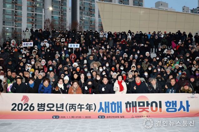 경인뉴스통신 김종득 기자 | 인천 동구는 1일 송현근린공원에서 각 동 주민자치회·자생단체 회원 등 다수의 구민이 참여한 ‘2026년 병오년 새해 맞이’행사를 개최했다고 밝혔다.