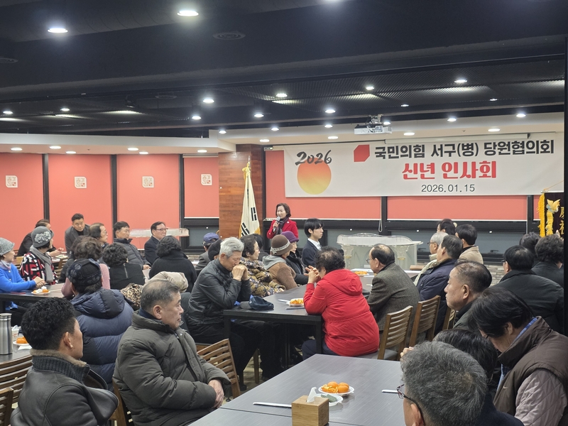 국민의힘 인천시 서구병 당원협의회(위원장 이행숙)는 지난 15일 종가집 대연회장에서 당원 150여 명이 함께한 가운데 신년 인사회를 열고 보수의 결속과 6·3 지방선거 필승 의지를 다졌다.