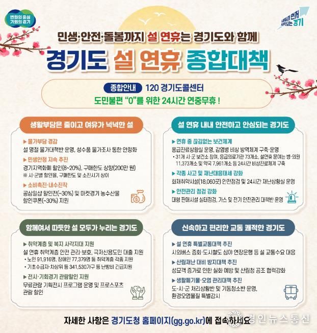 경인뉴스통신 유동익 기자 | 경기도가 도민들이 따뜻하고 편안한 명절을 보낼 수 있도록 ‘설 연휴 종합대책’을 추진한다.