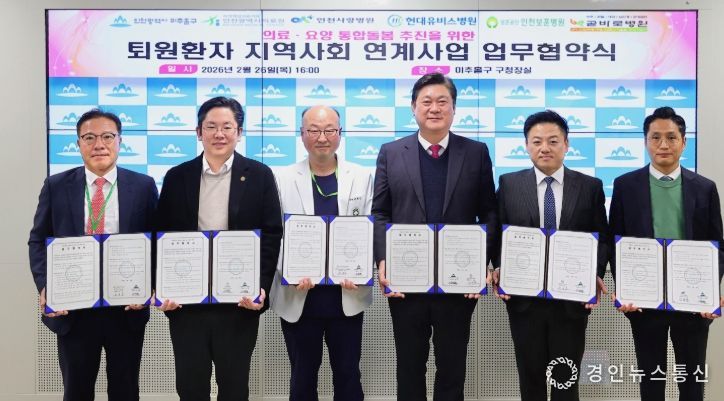 경인뉴스통신 김종득 기자 | 인천 미추홀구는 지난 26일 지역 내 5개 의료기관과 ‘퇴원 환자 지역사회 연계사업’ 추진을 위한 업무협약을 체결했다.