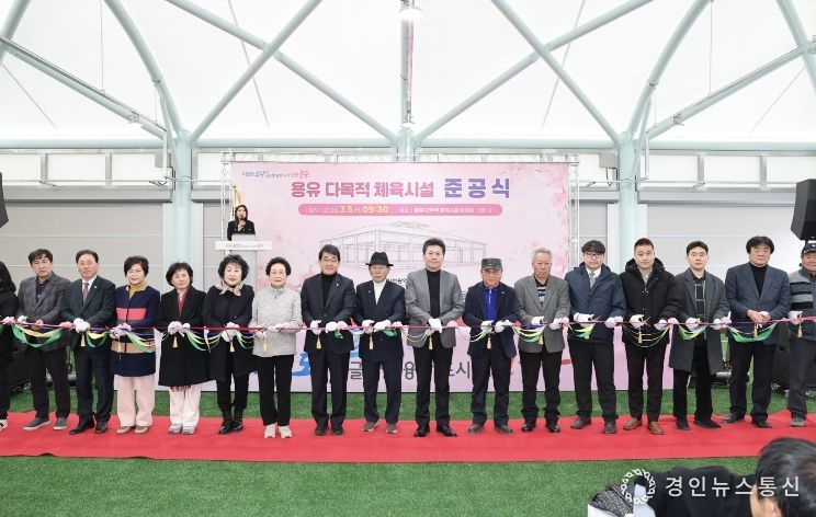 이날 준공식에서는 기념사·축사, 테이프 자르기, 기념 촬영, 시설 순회 등을 진행하며, 다목적 체육시설의 준공을 축하했다.