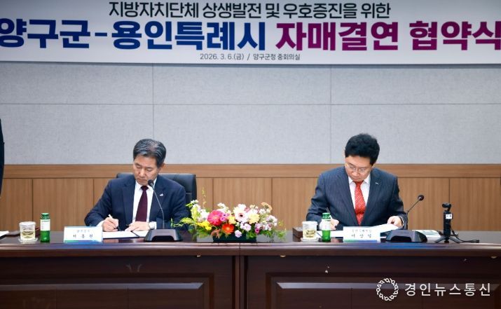 경인뉴스통신 유동익 기자 | 용인특례시는 6일 강원특별자치도 양구군과 자매결연을 하고, 두 도시의 교류와 발전을 위해 적극 협력하기로 했다.