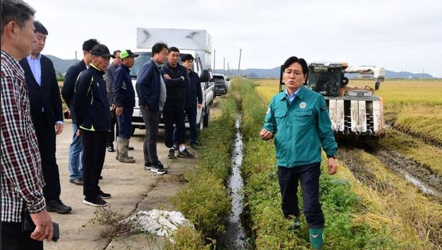 경인뉴스통신 김종득 기자 | 옹진군수는 지난 6일에 내린 집중호우와 강풍으로 인해 벼 도복 피해를 입은 북도·영흥면을 방문하여 피해 상황을 점검했다. 추석 연휴 기간 호우 및 강풍으로 북도면을 포함한 관내 5개면(북도·연평·대청·자월·영흥면)에 56농가, 151필지(약 18.8ha)에서 벼 도복 피해가 발생한 것으로 파악됐다. 옹진군수는 연휴가 끝난 10일 즉시 북도·영흥면 현장을 찾아 벼 도복 상태를 점검하고, 수확을 앞둔 벼가 넘어지면서 수확량 감소와 품질 저하 우려에 근심이 큰 농민들을 위로했다. 문경복 옹진군수는 “곧 벼 수확 시기인데, 기후로 인한 피해가 커 안타깝다”며 “농민 여러분의 피해가 최소화될 수 있도록 행정에서 할 수 있는 최선의 노력을 다하겠으며, 수확기 전까지 지속적으로 현장을 살피며 농가의 어려움을 함께 해결해 나가겠다”고 밝혔다. 옹진군 농정과 관계자는 벼 도복 피해가 접수된 농가를 대상으로 ▲현장 조사 및 피해 면적 파악 ▲기상상황(비 예보)을 고려하여 농가에게 벼 조기수확 유도 ▲농작물 재해보험금 청구(옹진농협 협조) ▲각 면과 협조하여 지속적인 상황 근무 등을 추진