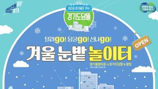 경인뉴스통신 유동익 기자 | 오는 17일부터 2월 28일까지 수원시 영통구 경기융합타운 내 경기도담뜰 광장을 찾으면 누구나 단돈 천 원에 썰매와 바이킹, 컬링 등 다양한 놀이기구를 즐길 수 있다. 경기도는 겨울방학을 맞은 아이들과 가족이 도심 속에서 안전하게 겨울 놀이를 즐길 수 있도록 ‘겨울 눈밭 놀이터’를 운영한다고 13일 밝혔다. 경기융합타운은 경기도청 광교 신청사를 중심으로 경기도의회, 경기도서관 등 여러 공공기관을 모은 복합단지를 말한다. 경기도담뜰은 경기융합타운에 위치한 도민 소통광장의 이름이다. 경기도담뜰에 문을 연 놀이 시설은 눈썰매, 얼음 썰매, 회전 썰매를 비롯해 컬링장과 에어바운스, 미니 바이킹 등 체험 공간으로 구성된다. 안전을 위해 키 120cm 미만 아동의 경우 보호자를 동반해야만 눈썰매장을 이용할 수 있고, 회전 썰매와 미니 바이킹은 13세 이하만 탑승 가능하다. 이용객 편의를 위한 시설로는 추위를 피할 수 있는 쉼터와 간식 푸드트럭이 운영된다. 영유아 동반 가족을 위한 보호실과 의무실도 갖춘다. 눈밭 놀이터는 1회차 오전 10시부터 오후 1시까지, 2회차 오후 2시부터 오후 5시까지 총 2회 운영한다. 회차당 최대 수용 가능 인원