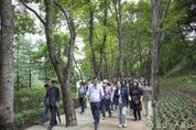 경인뉴스통신 유영광 기자 | 서울 서초구는 10월 14일, 도심 속 힐링 명소인 ‘길마중 초록숲길’에서 지역주민들과 함께하는 건강걷기 행사를 개최했다고 밝혔다. 행사는 시원한 가을 바람 속 올해 새단장된 길마중 초록숲길 2단계 구간(서초IC~서초1교)과 3단계 구간 일부(서초1교~명달공원)을 주민들과 함께 걸으며 힐링과 행복을 함께 나누는 시간으로 진행됐다. 시작에 앞서 구는 길마중 초록숲길 2단계 조성 과정과 주요 개선 내용을 주민들과 공유하며 새단장의 의미를 되새겼다. 이어 웰니스 연구소 소장을 맡고 있는 김응석 강사와 함께 간단한 레크리에이션과 스트레칭으로 몸을 푼 뒤, 올바른 걷기 자세를 배우며 본격적인 행사가 시작됐다. 전성수 서초구청장도 직접 참여해 주민들과 나란히 걸으며 소통의 시간을 가졌다. 전 구청장은 “숲길을 걸으며 건강과 힐링, 행복까지 누릴 수 있도록 ‘길마중 초록숲길’을 새롭게 단장했다”며 “용허리근린공원 인근에는 황토체험장과 서초에서 규모가 가장 큰 맨발체험 공간도 있으니, 오늘 직접 걸으며 얼마나 좋은지 느껴보시길 바란다”고 말했다. 주민들은 새단장한 숲길을 걷고, 맨발길