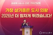 경인뉴스통신 유동익 기자 | 김성제 의왕시장이 5일 시청 대회의실에서 2026년 신년 기자간담회를 열고 민선8기 의왕시 주요성과와 2026년 시정 운영방향에 대해 설명하는 시간을 가졌다. 김 시장은 “지난 3년 반은 의왕시의 새로운 미래를 준비하며 역동적으로 도약해 온 시간이었다”며, “대규모 도시개발과 복선전철 사업을 비롯해 교육과 복지, 문화‧예술, 일자리, 안전에 이르기까지 도시 전반에 걸쳐 혁신적인 변화를 만들어 왔다”고 평가했다. 특히, 오랫동안 해결되지 못했던 숙원사업들이 해결된 것을 의왕시의 주요 성과로 설명하며, 대표적인 사례로 의왕 문화예술회관 착공, 인덕원~동탄 및 월곶~판교 복선전철 착공, 내손중고통합학교 개교, 의왕 종합병원 유치 등을 꼽았다. 또한, 초평지구와 청계2지구 내 기업·투자 유치, 부곡커뮤니티센터 착공, 의왕역~판교 간 프리미엄버스 및 초평동 똑버스 신설, 의일로2 개통 등 도로망 확충, 22개 맨발걷기길 조성, 백운호수 생태탐방로 및 백운호수공원 개장, 의왕야구장 및 금천천 파크골프장 개장, 글로벌인재센터 부곡분원 개소, 노인 버스 무료승차 지원사업 추진, 장애인 힐링쉼터 개