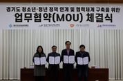 경인뉴스통신 유동익 기자 | 경기도미래세대재단은 12일 옛 경기도청사 신관 4층 대회의실에서 수원·성남·시흥시청소년청년재단과 ‘경기도 청년 정책 연계 및 협력체계 구축 업무협약’을 체결했다. 협약의 핵심은 ▲청년 분야 공동사업 기획 ▲정책·사업 정보 공유 ▲참여 기반 강화다. 4개 재단은 청년 일경험, 진로·취업, 사회참여를 잇는 연계형 프로그램을 공동 발굴하고, 공동 조사·연구와 정책 제안으로 협력 범위를 넓힐 계획이다. 참여기구와 네트워크 교류도 확대한다. 프로젝트와 캠페인을 함께 추진하고, 전문 인력과 강사, 공간, 콘텐츠, 운영 노하우 등 인적·물적 자원을 상호 연계한다. 협약 이후에는 정례 협의체를 운영해 공동 과제를 발굴하고 협력 사업을 단계적으로 확대한다. 김현삼 경기도미래세대재단 대표이사는 “청소년기 경험이 청년기 지원으로 자연스럽게 이어지도록 재단 간 협력을 본격화하는 출발점”이라며 “공동 과제를 꾸준히 발굴하고 협업 체계를 촘촘히 다져 정책이 현장에서 성과로 이어지게 하겠다”라고 말했다.