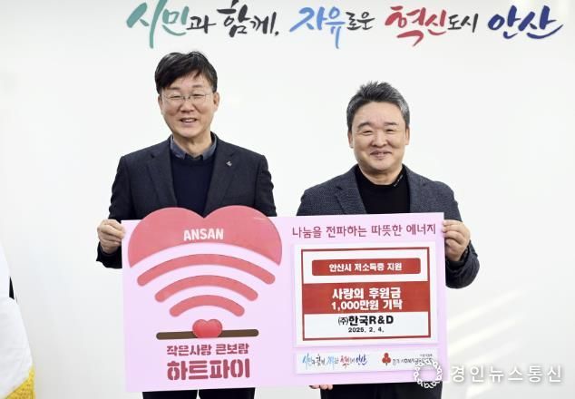 경인뉴스통신 유동익 기자 | 안산시는 지난 4일 (주)한국R·D로부터 사랑의 후원금 1,000만 원을 기탁받았다고 5일 밝혔다.