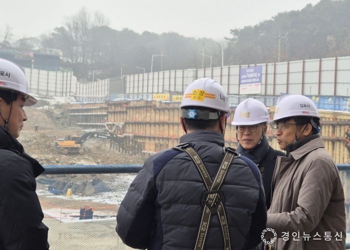 경인뉴스통신 이경우 기자 | 김포시 이석범 부시장은 지속된 대설‧한파특보에 따른 대규모 주택건설현장의 안전관리 상태 등을 점검하기 위해 12일에 공사 현장을 방문했다.