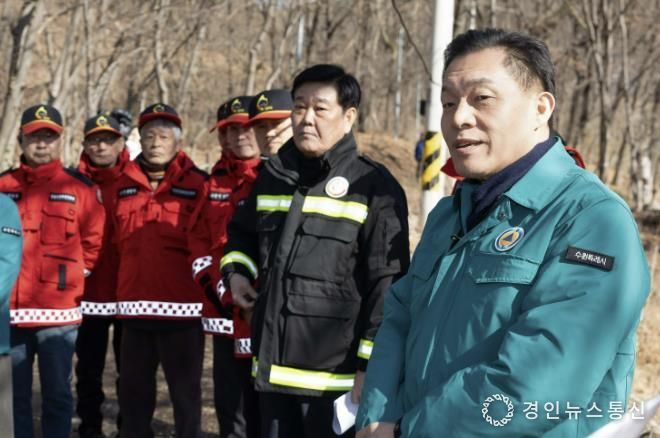 경인뉴스통신 유동익 기자 | 이재준 수원시장이 13일 광교산 기슭에서 ‘새빛 현장시장실’을 열고, 산불 대응 체계를 점검했다.