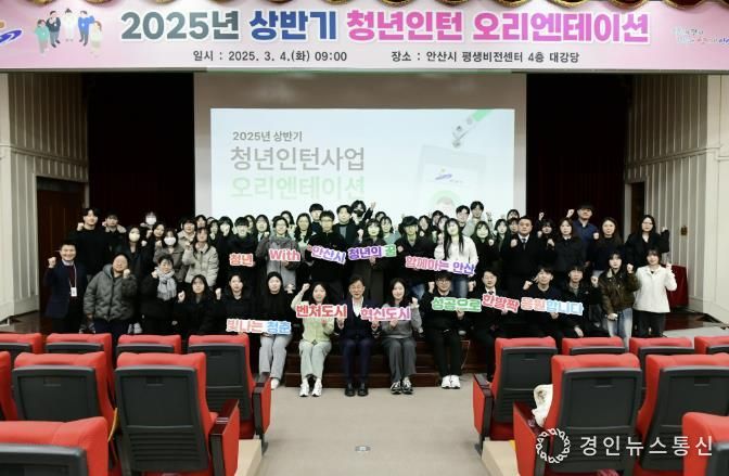 경인뉴스통신 유동익 기자 | 안산시는 지난 4일 안산시 평생비전센터 대강당에서 상반기 청년인턴 62명을 대상으로 오리엔테이션을 개최했다고 5일 밝혔다.