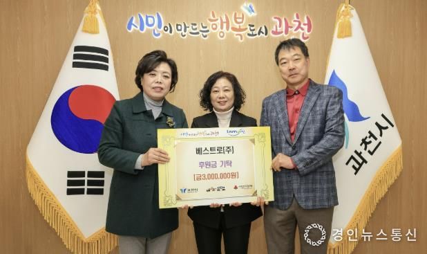 경인뉴스통신 유동익 기자 | 과천시는 17일 과천동에 있는 식품 유통 전문기업 베스트로(주)로부터 도움이 필요한 중학생과 고등학생들에게 전달할 이웃돕기 성금 300만 원을 기부받았다.