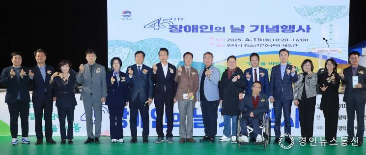경인뉴스통신 유동익 기자 | 평택시는 지난 15일 제45회 장애인의 날을 맞아 장애인 단체(9개) 연합으로 장애인, 장애인 가족, 장애인단체와 기관 관계자 등이 참석한 가운데 평택시청소년문화센터 체육관에서 기념행사를 개최했다.