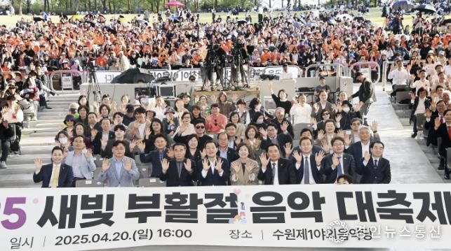 경인뉴스통신 유동익 기자 | 수원시가 주최하고 수원특례시기독교총연합회가 주관한 ‘2025 새빛 부활절 음악대축제’가 20일 수원제1야외음악당에서 성황리에 열렸다.