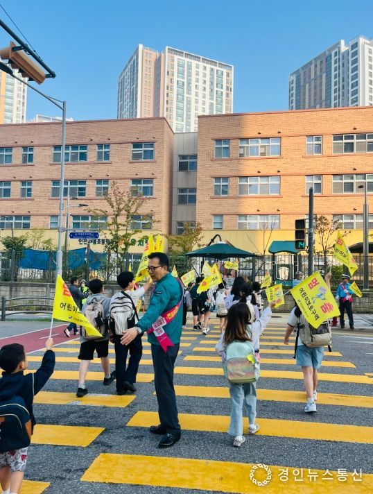 경인뉴스통신 김종득 기자 | 연수구는 지난달 30일과 10월 1일 은송초등학교와 새봄초등학교 앞 스쿨존 횡단보도에서 ‘어린이 교통안전 깃발 캠페인’을 실시했다.