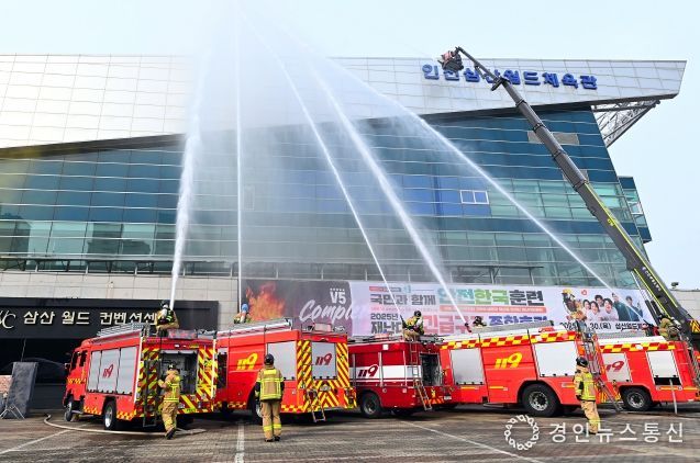 경인뉴스통신 김종득 기자 | 부평구는 30일 삼산월드체육관에서 재난 대응 역량 강화를 위한 지진·화재 등 복합 재난 대비 ‘2025년 안전한국훈련’을 실시했다.