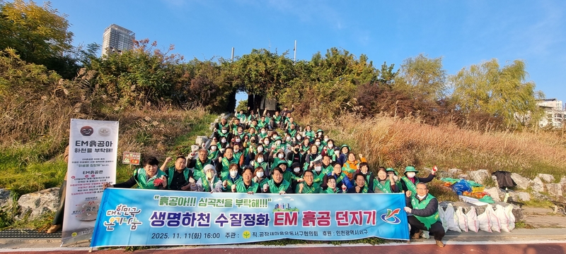 이번 사업은 하천 수질개선과 생태환경 복원을 위해 EM(Effective Microorganisms) 활성액으로 지난 10월에 만든 흙공 약 3천개를 발효시켜 심곡천에 던지며 수질정화 활동을 펼쳤다.