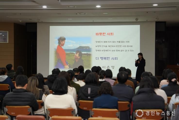 교육은 한국 장애인 개발원 장애인식개선 전문 강사인 이은영 강사가 진행했으며 ▲장애의 개념과 유형 ▲일상 속 장애 차별 사례 ▲장애인 접근성 보장 ▲지역사회가 구현해야 할 포용적 환경 ▲장애 친화적 정책 추진 방향 등 실질적 내용을 중심으로 이루어졌다.