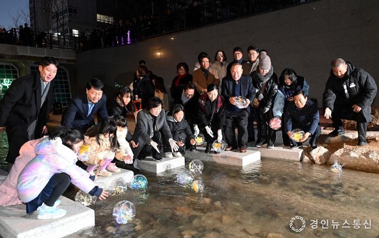 행사는 부평구립소년소녀합창단의 축하공연을 시작으로 ▲은하수길 점등식 ▲굴포천 LED 소원볼 띄우기 ▲은하수길 보행 등 다양한 프로그램으로 펼쳐졌다. 특히 주민들의 새해 소망을 담은 LED 소원볼이 굴포천을 따라 밝게 흘러가며 겨울밤 물길을 수놓아 주민들의 큰 호응을 얻었다.