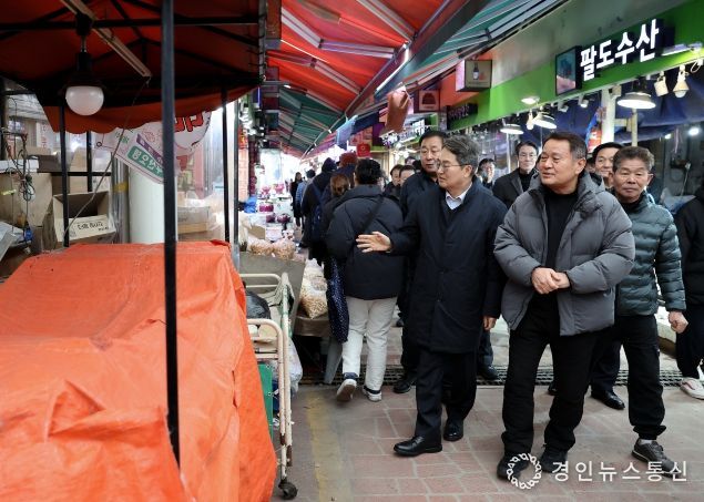 경인뉴스통신 유동익 기자 | 15일 부천에서 민생경제 현장투어를 진행 중인 김동연 경기도지사가 오정구 원종동에 위치한 제일시장을 다시 방문해 지난달 발생한 트럭 돌진 사고 피해 수습 현황을 점검하고 상인들을 위로했다.