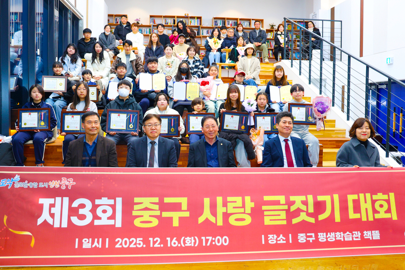 강후공 의원은 “이번 대회를 통해 지역에 대한 이해와 자긍심이 자연스럽게 형성되고, 올바른 가치관과 표현력을 키우는 계기가 되길 바란다”라며 “중구의회도 지역 정체성과 공동체 의식을 높이는 다양한 문화·교육 활동을 지속적으로 응원하겠다”라고 밝혔다.