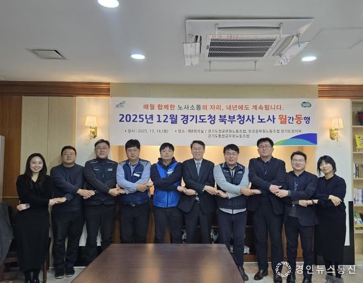 경인뉴스통신 유동익 기자 | 경기도 북부청과 경기도청 3개 노동조합(경기도청공무원노동조합, 전국공무원노동조합 경기도청지부, 경기도통합공무원노동조합)은 ‘노사월동(노사 월간동행)’을 매월 정기적으로 운영해 오며 실질적인 조직문화 개선과 노사 간 신뢰 회복 기틀을 마련했다고 22일 밝혔다.