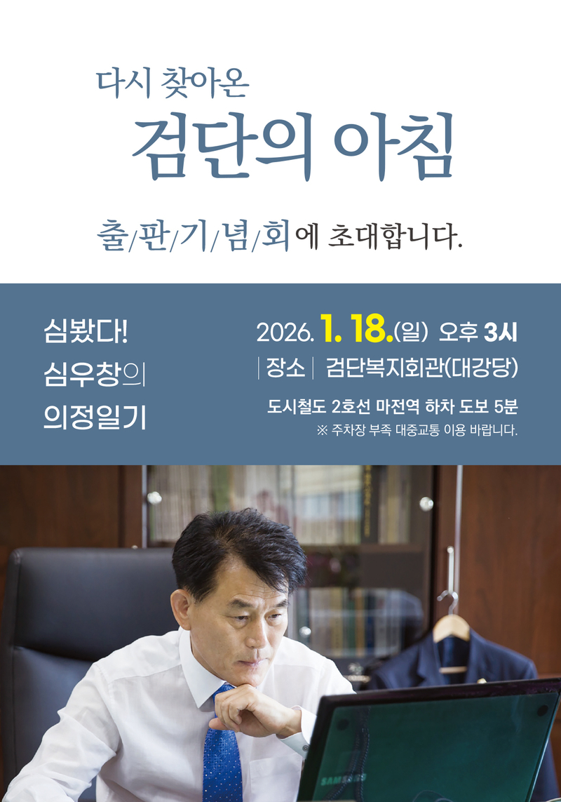심우창(69) 서구의회 의원은 오는 2026년 1. 18.(일) 오후 3시, 검단복지회관 대강당에서 의정 현장에서의 기록과 함께 걸어온 시간 등 의정일기를 담은 ‘다시 찾아온 검단의 아침!‘이란 책을 발간하면서 출판기념회를 갖는다고 밝혔다.