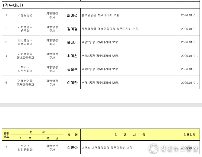 #인천광역시 부평구 인사발령 사항(2026.1.1)