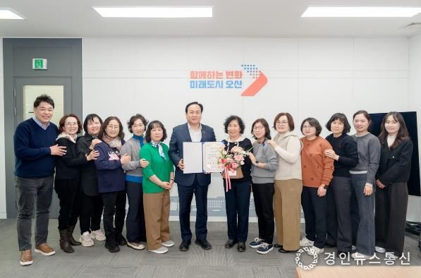 경인뉴스통신 유동익 기자 | 오산시는 지난 9일, 제15기 국민추천포상에서 국무총리 표창을 수상한 ‘이스트 봉사단’에 상장을 전달하고 봉사자들을 격려했다고 밝혔다. 이스트 봉사단은 앞서 지난 1월 2일 청와대 영빈관에서 열린 시상식에서 국무총리 표창을 수상한 바 있다.