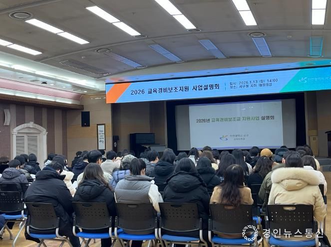 경인뉴스통신 이경우 기자 | 인천광역시 서구는 2026년도 교육경비 보조지원 사업의 원활한 추진을 위해 관내 초·중·고·특수학교 교육경비사업 담당 실무자 84명이 참석한 가운데 ‘2026년 교육경비보조지원 사업설명회’를 개최했다.