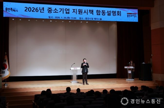 경인뉴스통신 유동익 기자 | 용인특례시는 20일 시청 에이스홀에서 지역 내 중소기업 지원 정책을 설명하는 ‘2026년 중소기업 지원시책 합동설명회’를 열었다.