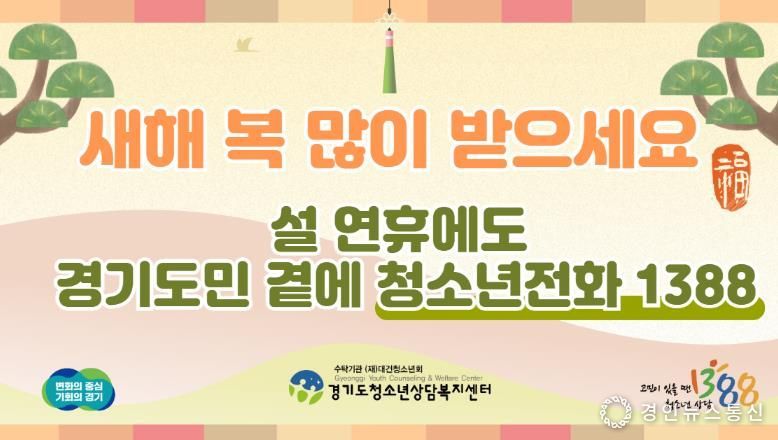 경인뉴스통신 유동익 기자 | 경기도는 설 당일을 포함해 14~18일 연휴 기간에도 위기 청소년 심리 상담 서비스 ‘청소년전화1388’을 24시간 운영한다.