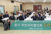경인뉴스통신 김종득 기자 | 인천 중구의회는 지난 29일 율목동 커뮤니티센터에서 열린 '2025년 중구 주민자치협의회 송년회'에 참석했다. 이날 행사에는 이종호 의장, 손은비 운영총무위원장, 윤효화 예산결산특별위원장이 참석해 한 해 동안 지역사회 발전을 위해 헌신한 주민자치회장단과 사무국장 등 각 동 주민자치회 관계자들에게 감사와 격려의 뜻을 전했다. 이종호 의장은 "올 한 해 주민 가까이에서 지역 현안 해결과 주민자치 활성화를 위해 애써주신 모든 분께 깊이 감사드린다"며 "중구의회도 주민자치회가 지역 공동체의 중심 역할을 할 수 있도록 제도적 지원을 아끼지 않겠다"고 밝혔다. 한편, 중구의회는 앞으로도 주민자치협의회와 협력해 주민 중심의 지역 자치 활성화를 위해 노력한다는 계획이다.