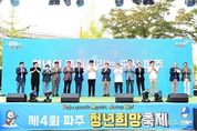 경인뉴스통신 김덕수 기자 | 파주시는 지난 27일 금릉역 앞 중앙광장에서 열린 ‘제4회 파주 청년희망축제’가 시민들의 뜨거운 호응 속에 성공적으로 마무리됐다고 밝혔다. 올해 축제는 ‘파주청년, 다시 도약하다!(Paju Youth Again, Jump Up!)’을 주제로, 도약하는 청년세대의 열정과 활력을 시민과 함께 나누는 장으로 마련됐다. 이번 축제의 백미는 개막식과 함께 진행된 ‘파주 청년 비전선포식’이었다. 청년정책협의체 공동위원장은 무대에서 ‘청년이 뿌리내리는 도시, 파주’라는 비전을 선포하며, 청년과 지역사회가 함께 나아갈 미래의 방향을 제시했다. 특히 청년들이 직접 낭독한 선언문과 청년친화도시 지정을 위한 기념행사는 파주시의 확고한 의지를 대외적으로 알리는 계기가 됐다. 오후 2시부터 8시까지 진행된 이번 축제는 ▲사전공연 ▲청년 골든벨 ▲청년 가요제 ▲청년공간 특별강좌 ▲프리미엄 수제 맥주 시음 ▲청년창업가 플리마켓 ▲무료 체험공간 ▲대형 ‘파랑’ 포토존 등 다채로운 프로그램으로 꾸려졌다. 가요제 무대에서는 청년들의 끼와 열정이 빛났으며, 청년창업가 판매공간 및 수제 맥주 시음 공간은