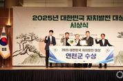 경인뉴스통신 김덕수 기자 | 연천군이 (사)한국자치발전연구원이 주관하는 '2025 대한민국 자치발전 대상'에서 기초자치단체 부문 수상자로 선정됐다. 시상식은 지난 23일 서울 용산구 백범김구기념관 컨벤션홀에서 개최됐다. 이번 수상은 연천군이 접경지역이라는 특수한 여건 속에서도 지역 자원을 활용한 독창적인 정책 추진, 주민 참여 확대, 맞춤형 행정 운영을 통해 지방자치 발전에 크게 기여한 공로를 인정받은 결과다. '대한민국 자치발전 대상'은 행정안전부 소관 (사)한국자치발전연구원이 주관하며, 국회의원·지방자치단체·의회·공무원·민간 부문 등에서 지방자치 발전에 기여한 개인과 단체를 선정해 시상한다. 특히 지방자치단체 부문은 단체의 업적을 중심으로 평가해 수여되며, 자치분권과 지역 혁신을 선도한 모범 사례를 널리 알리는 데 목적이 있다. 김덕현 연천군수는 “이번 수상은 연천군민과 함께 만들어낸 값진 성과”라며 “앞으로도 군민의 삶을 풍요롭게 하고, 지역 발전을 선도하는 자치행정을 지속적으로 펼쳐 나가겠다”고 소감을 밝혔다.