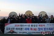 경인뉴스통신 김종득 기자 | 김포시와 김포시체육회·김포시장애인체육회가 지난 1일 하성면 봉성산에서 ‘2026 봉성산 해맞이 행사’를 개최하고, 시민들과 함께 병오년 붉은 말의 해의 시작을 알렸다. 이번 행사는 새해 첫 일출을 맞이하며 시민 화합과 지역 공동체의 안녕을 기원하기 위해 마련됐다. 이른 새벽부터 봉성산을 찾은 시민들은 서로 새해 인사를 나누며 함께 산길을 오르고, 정상에서 떠오르는 해를 바라보며 한 해의 평안과 희망을 기원했다. 당초 예상보다 많은 약 1,000명의 시민이 참여해, 추운 날씨에도 불구하고 봉성산 일대는 새해를 맞이하는 시민들의 발걸음으로 활기를 띠었다. 행사는 오전 7시 봉성산 정상에서 시민 1,000여 명이 참여한 가운데 ▲성악 앙상블 ‘벨라보체 6인조’의 밝고 웅장한 새해 축하 공연을 시작으로 ▲타악연희단 ‘누리’의 박진감 넘치는 모듬북 공연이 이어지며 새해의 기운을 힘차게 알렸다. 이어 시민들이 직접 참여해 새해 소망과 행복, 지역 화합을 기원하는 프로그램이 진행되며 의미를 더했다. 이날 김병수 김포시장은 “붉은 말의 해, 김포에 붉은 교통이 들어와서 모든 분들에게 큰 기쁨이 됐