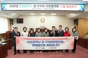 경인뉴스통신 김종득 기자 | 강화군의회는 29일 강화군에서 인천광역시 군·구의회 의장협의회 12월 월례회의를 개최하고 ‘강화 경제자유규역 지정’에 대한 공감대를 함께 나눴다고 밝혔다. 이날 회의에는 협의회 회장인 이의명 옹진군의회 의장을 비롯해 한승희 강화군의회 의장, 이종호 중구의회 의장, 유옥분 동구의회 의장, 전경애 미추홀구의회 의장, 박현주 연수구의회 의장, 이정순 남동구의회 의장, 안애경 부평구의회 의장, 신정숙 계양구의회 의장 등 인천광역시 군·구의회 의장들이 참석했다. 인천광역시 군·구의회 의장협의회는 매월 정기적인 회의를 통해 군·구의회 간 협력 체계를 강화하고, 지역 균형 발전과 지방자치 발전을 위한 공동 현안을 지속적으로 논의하고 있다. 2025년 한 해를 마무리하는 이번 월례회의에는 박용철 강화군수가 참석하여 의장들과 인사를 나누었으며, 한승희 강화군의회 의장의 환영사와 이의명 협의회장의 주재로 회의가 진행됐다. 회의에서는 ▲지역 현안에 대한 상호 협력 방안 ▲지방의회 역할 강화 ▲주요 정책 및 의정 활동 공유 등 다양한 안건에 대해 논의했다. 이의명 협의회장은 “이