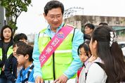 경인뉴스통신 유동익 기자 | 이상일 용인특례시장은 14일 아침 처인구 고림로에 위치한 고진초등학교 정문 횡단보도에서 어린이들의 안전한 통학환경 조성을 위한 교통지도 봉사활동에 참여하고 학교 주변 통학로를 점검했다. 이상일 시장은 서경란 고진초 교장, 녹색어머니회·학부모회·학생 등 60여명과 함께 등굣길 어린이들이 안전하게 길을 건널 수 있도록 돕고 운전자들에게 ‘어린이보호구역 내 서행’을 당부하는 교통안전 캠페인을 펼쳤다. 이 시장은 통학로 현장을 둘러보며 ▲고림고 유리방음벽 모서리 보호대 설치 ▲고림고~힐스테이트용인고진역 구간 횡단보도 너비 확대 ▲해당 구간 도로의 물고임 등 도로시설물 일제정비 ▲통학로 낙엽제거(보행자 미끄러짐 방지) 등의 추가 건의사항을 꼼꼼히 챙겼다. 이상일 시장은 녹색어머니회와 학부모회 회원들에게 “아이들의 등굣길을 지켜주셔서 감사 드린다”며 “학생들이 마음 놓고 통학할 수 있는 안전한 도시 환경을 만드는 것이 무엇보다 중요한 만큼 시에서도 현장을 잘 살펴 필요한 조치를 신속히 진행하겠다”고 말했다. 이 시장은 10월과 11월에도 용인신촌초, 백현초, 구갈초, 신월초, 함박