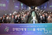 경인뉴스통신 유동익 기자 | 이상일 용인특례시장은 14일 기흥구 상하동 빛으로아트스토리에서 열린 ‘기흥장애인복지관 개관 20주년 기념식’에 참석해 복지관의 20주년을 축하하고 관계자들을 격려했다. 기흥장애인복지관(관장 김선구)이 주최·주관한 기념식엔 이상일 시장, 복지관 이용자, 후원자, 자원봉사자 등 300여 명이 함께해 복지관의 발자취를 돌아보고 새로운 도약을 다짐했다. 이상일 시장은 “지난 20년 동안 장애인 여러분께 빛이 되어주고, 주저앉고 싶을 때 다시 일어설 수 있는 용기를 준 복지관 관계자와 후원자, 자원봉사자 여러분께 감사드린다”며 “시대 변화에 맞춰 장애인의 건강증진과 인지능력 향상을 위한 다양한 프로그램을 운영하며 전국에서 벤치마킹할 만큼 선도적인 역할을 해온 복지관을 앞으로도 더욱 응원하고 지원하겠다”고 말했다. 이 시장은 이어 “전국 최초로 24시간 돌봄체계를 갖춘 장애인온종일돌봄센터를 개소했고, 기흥국민체육센터를 시작으로 공공수영장에 장애인을 위한 가족용 샤워실·탈의실·화장실을 설치한 것도 여러분의 가르침 덕분”이라며 “앞으로도 장애인회관과 반다비 체육센터 건립, 전국 최초로 도입한 주유