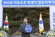 경인뉴스통신 유동익 기자 | 이상일 용인특례시장은 6일 처인구 양지면 대대리 ‘자유수호희생자위령탑’에서 열린 제45회 자유수호희생자 합동위령제에 참석해 희생자들을 추모했다. 이날 행사엔 이상일 시장을 비롯한 박창무 한국자유총연맹 용인시지회장 등 지역 내 단체 관계자와 시민 50여 명이 참석했다. 행사는 희생자를 기리기 위한 추도 의식, 추념사·추도사, 조가 연주와 제창, 진혼무, 헌화 순으로 진행됐다. 이상일 시장은 추도사에서 “고대부터 자유는 인간에게 가장 중요한 가치로 자유를 얻지 못하면 우리는 평등해질 수가 없다”며 “선배 세대들이 목숨을 바치면서 자유를 지켜낸 모습만 봐도 자유는 그냥 얻어진 것이 아니다”라고 강조했다. 이 시장은 “우리가 매년 위령제를 지내는 것은 1990년 9월 21일 희생당하신 분들의 고귀한 넋을 우리가 면면히 잘 이어받아 선배 세대가 소중하게 지킨 이 나라를 더욱더 발전시켜 후배 세대들에게 물려주기 위함이라고 생각한다”며 “호국영령의 넋이 하늘나라에서도 늘 평안을 누리시길 기원드린다”고 했다. 자유수호희생자위령탑은 1950년 9월 21일 용인·화성·수원 등지에서 끌려와
