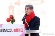 경인뉴스통신 김종득 기자 | 인천광역시의회 정해권 의장(국·연수구1)은 1일 인천시청 애뜰광장에서 열린 ‘희망 2026 나눔캠페인 출범식’에 참석해 지역사회 나눔 확산의 의미를 강조했다. 인천사회복지공동모금회가 주관하고, 인천시가 함께한 이번 행사는 이날부터 내년 1월 31일까지 62일간 진행되는 연말연시 대표 모금 캠페인의 시작을 알리는 자리다. 출범식은 정해권 의장을 비롯해 유정복 인천시장과 도성훈 인천시교육감, 기부자 대표, 각계 기관·단체 관계자 등이 참석한 가운데 개회 선언과 주요 계획 보고, 성금 전달식, 사랑의 온도탑 시연 등으로 진행됐다. 정해권 의장은 “희망 나눔 캠페인은 어려운 이웃을 향한 인천의 따뜻한 마음을 모으는 중요한 시작점”이라며 “올해도 시민 여러분의 참여가 사랑의 온도탑을 따뜻하게 채우고, 지역 곳곳의 복지 사각지대를 밝히는 큰 힘이 되길 바란다”고 말했다. 그는 또 “인천시의회는 도움이 절실한 이웃에게 제도적 지원이 안정적으로 전달될 수 있도록 예산과 정책을 세심하게 챙기겠다”며 “연말연시 어려움을 겪는 분들에게 희망이 닿도록 시민과 함께하는 의정 활동에 최선을 다하