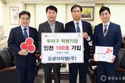 경인뉴스통신 김종득 기자 | 부평구는 주식회사 오상자이엘이 인천 100호이자 부평구 15호 ‘우리구 착한기업’에 가입했다고 16일 밝혔다. 앞서 차준택 구청장과 오상자이엘 김선기 대표이사를 비롯한 임직원, 박용훈 인천사회복지공동모금회 사무처장 등이 참석한 가운데 가입식이 지난 14일 구청에서 열렸다. 이번 가입식은 부평구에서 ‘우리구 착한기업’ 100호가 탄생한 데 대한 상징적 의미와 더불어, 민관이 상생 협력을 통해 사회안전망을 촘촘하게 구축하는 데 의지를 다지는 자리가 됐다. 오상자이엘(주)(대표이사 김선기)은 지난 1993년에 설립된 코스닥 상장 IT 전문 기업으로, 부평구 부평6동에 본사를 두고 있다. 현재 약 190명의 임직원이 근무하며 지역 일자리 창출과 이웃사랑 나눔활동을 바탕으로 지역사회와 함께 성장하고 있다. 오상자이엘(주)은 지난 2020년부터 현재까지 부평6동 행정복지센터에 매월 50만원을 정기 기탁하고 있다. 또, 저소득 취약계층을 위해 2023년에는 부평6동에 300만원을, 올해에는 구에 2천만원을 지원하는 등 꾸준한 지역 나눔을 실천하고 있다. 김선기 오상자이엘