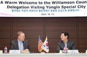 경인뉴스통신 유동익 기자 | 이상일 용인특례시장이 13일 용인의 자매도시인 미국 텍사스주 윌리엄슨카운티의 대표단과 만나 양 도시의 발전을 위한 협력 방안을 논의했다. 이날 시청 접견실에서 이 시장은 스티븐 스넬(Steven Snell) 윌리엄슨카운티장과 러스 볼즈(Russ Boles) 윌리엄슨카운티 커미셔너, 데이브 포터(Dave Porter) 윌리엄슨카운티 경제개발파트너십 전무이사를 만나 경제와 산업, 교육 등 다양한 분야에 대해 의견을 나눴다. 이날 이상일 시장을 만난 스티븐 스넬 윌리엄슨카운티장은 전임자인 빌 그래벨(Bill Gravell) 윌리엄슨카운티장에 이어 지난 4월 신임 윌리엄슨카운티장으로 취임했다. 이상일 시장은 “양 도시는 도시 이름을 붙인 명예도로명을 부여하면서 우정을 쌓고, 교류협력을 활발하게 하고 있다”며 “윌리엄슨카운티 대표단과 텍사스 주립대학교 관계자들이 용인에 있는 단국대학교 관계자를 만나 협력관계 구축에 대한 논의를 진행하는 것으로 알고 있는 데 양 도시에 있는 대학이 교류하는 것은 매우 뜻 깊은 일”이라고 말했다. 이 시장은 “윌리엄슨카운티에는 첨단산업 관련 기업들의